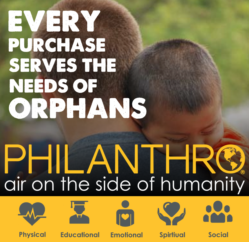 • PHILANTHRO is the only brand where 10% of every purchase is donated to support orphans around the world