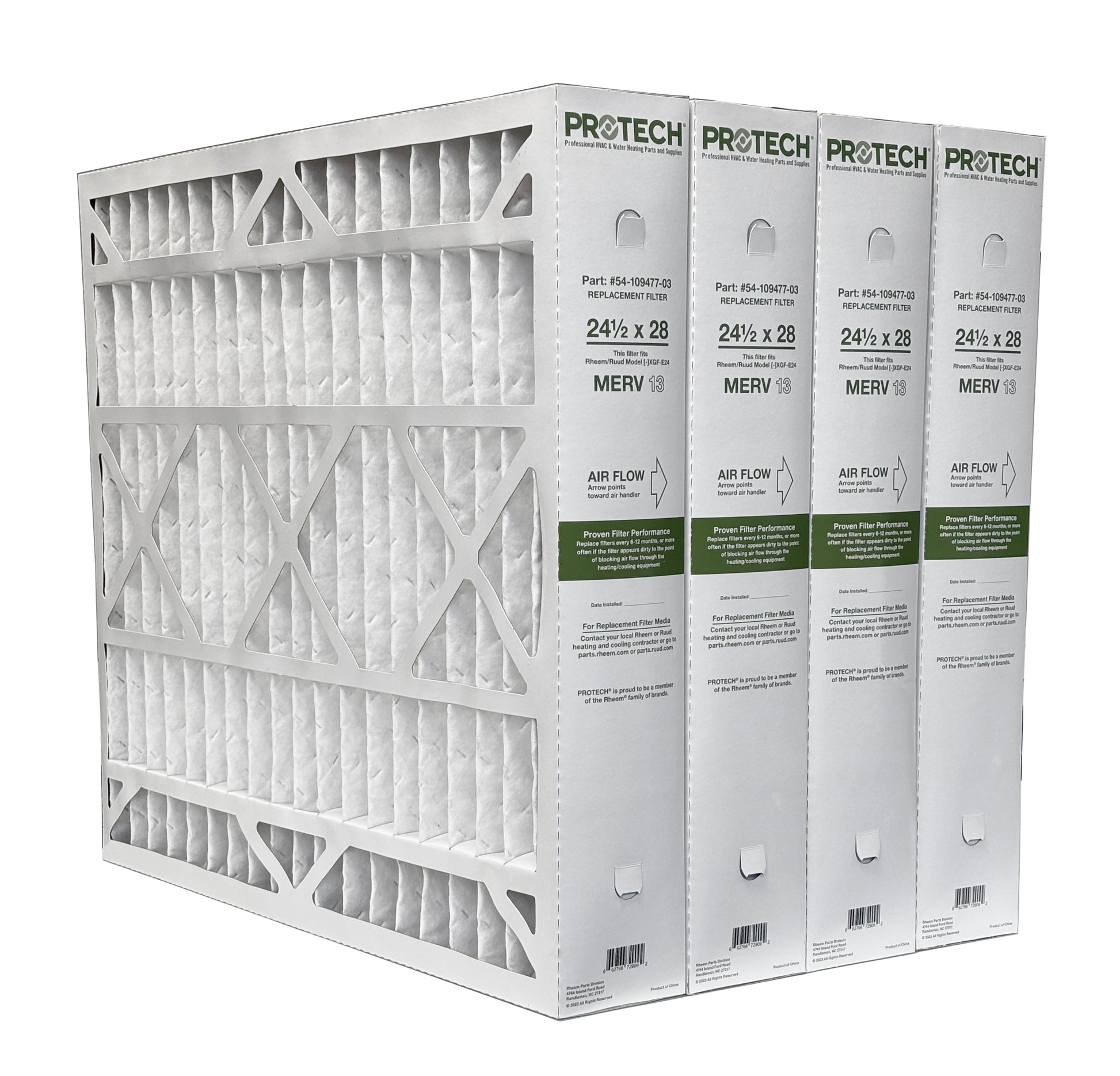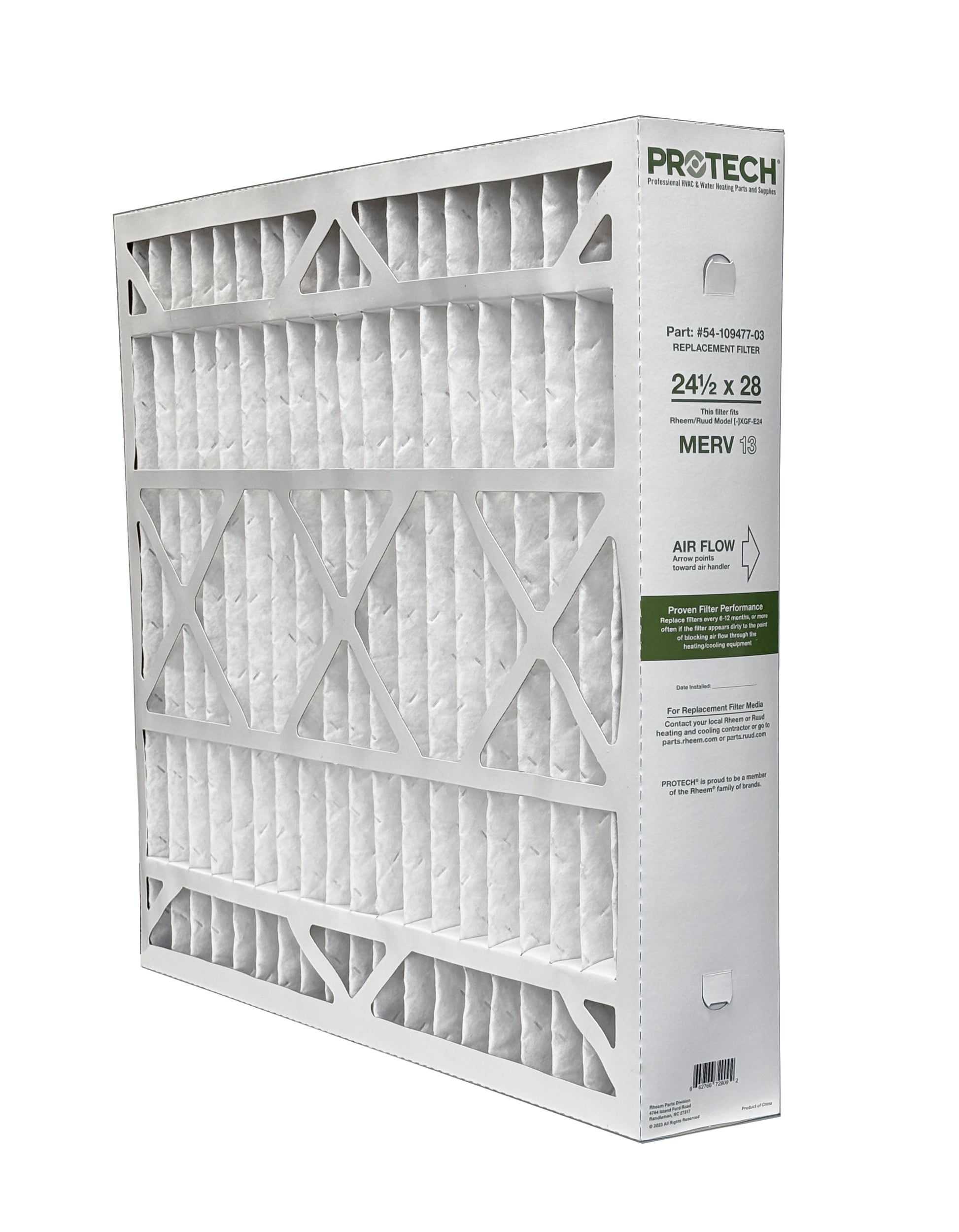 This 4" deep-pleat filter that perfectly fits the Rheem/Ruud Model [-]XGF-E24 media cabinet so it maximizes surface area and minimizes filter changes. Reduces major pollutants, such as dust and pollen, from the air passing through your HVAC systems.