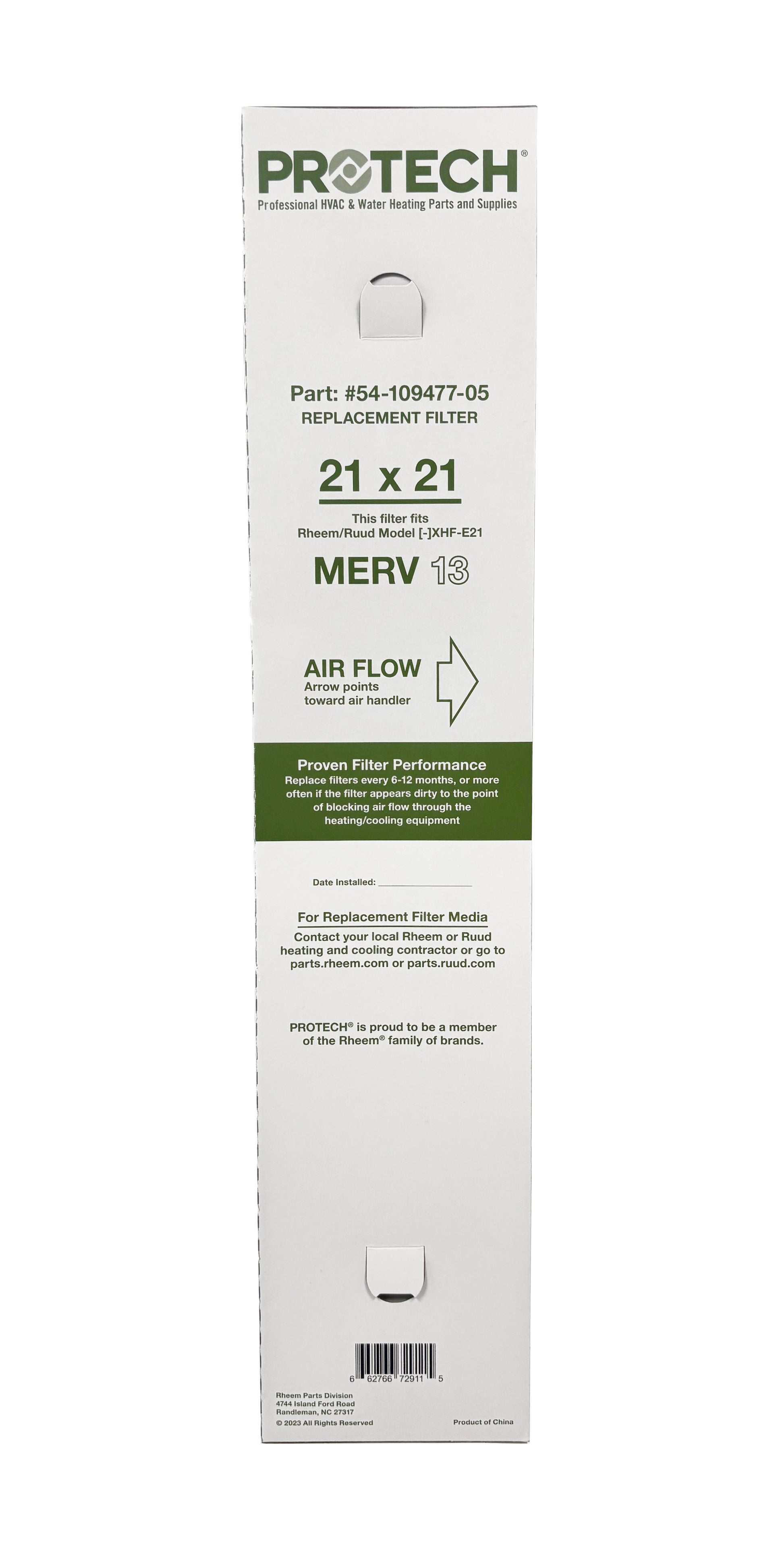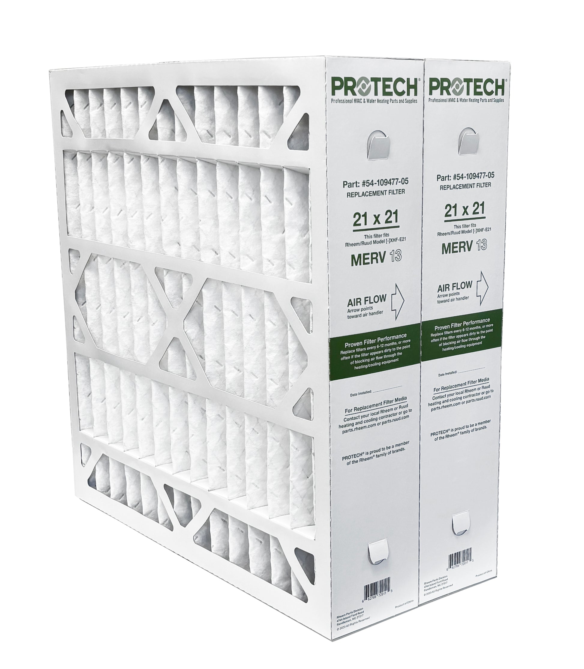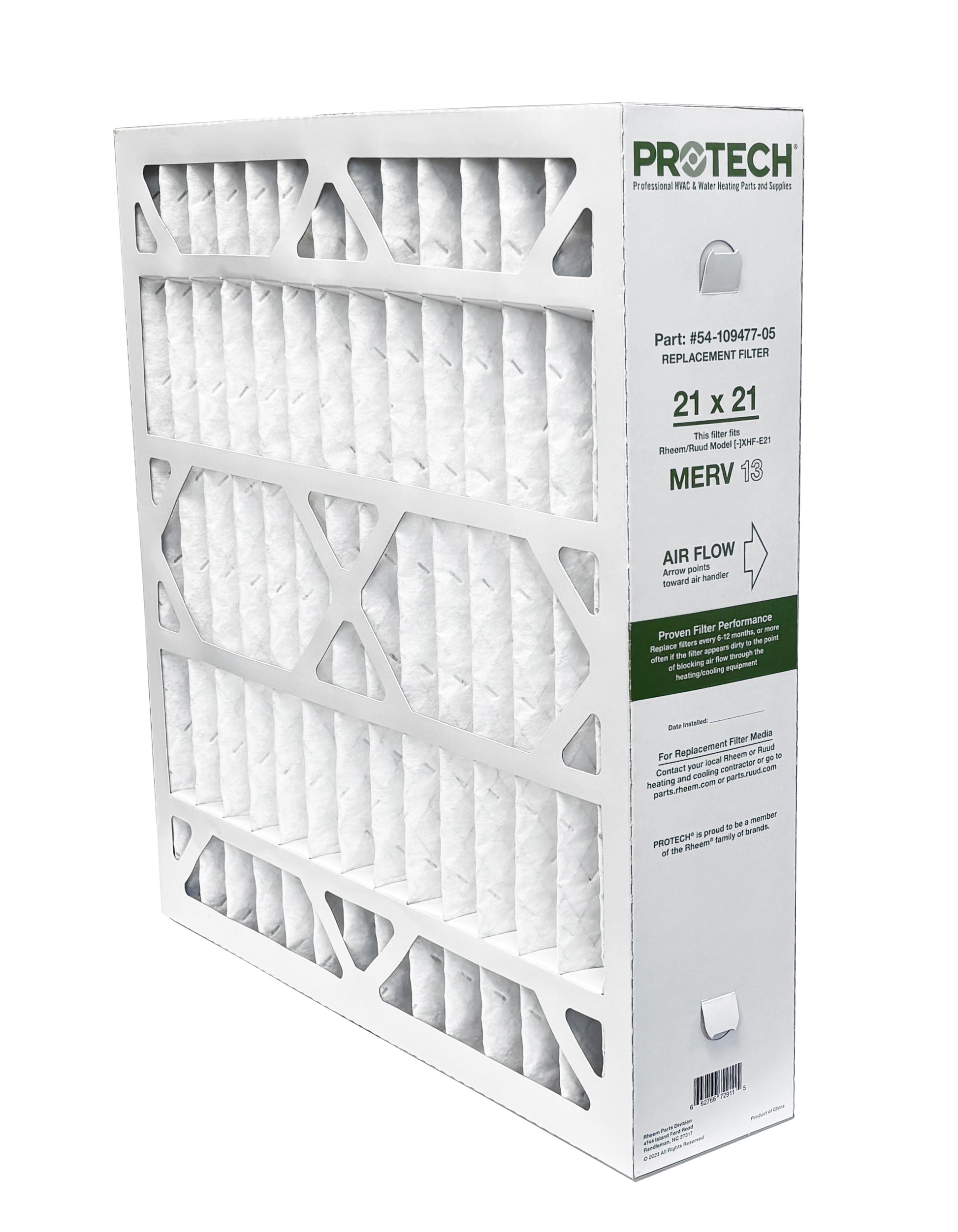 This 4" deep-pleat filter that perfectly fits the Rheem/Ruud Model [-]XHF-E21 media cabinet so it maximizes surface area and minimizes filter changes. Reduces major pollutants, such as dust and pollen, from the air passing through your HVAC systems.